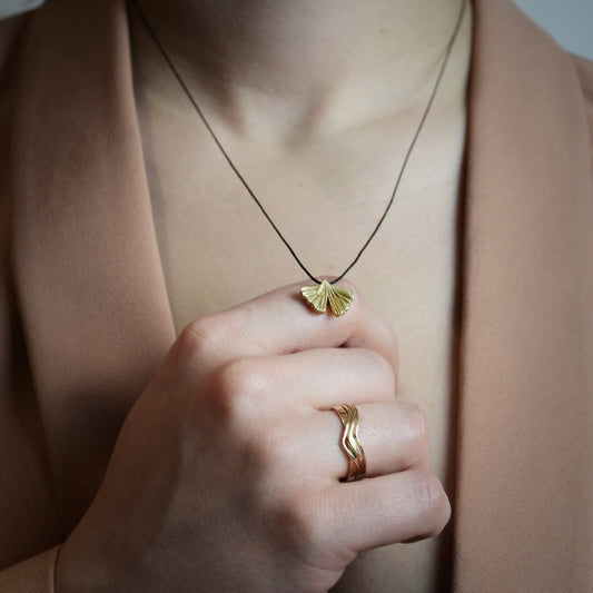 gingko biloba pendant in gold